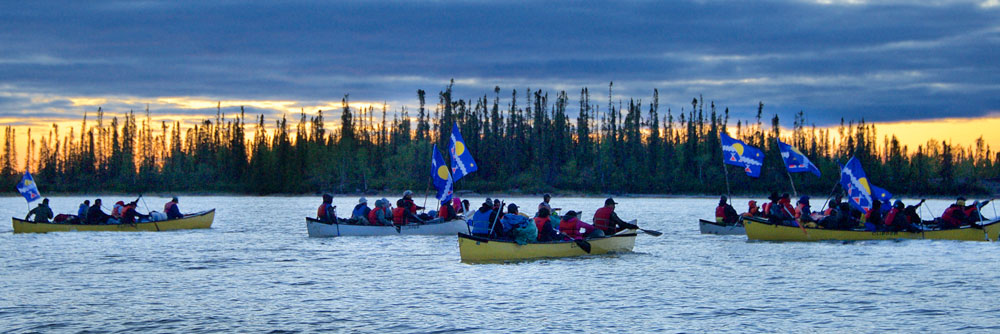 The importance of the canoe to Tłı̨chǫ lifeways past and present is visible in the myriad portage trails that criss-cross Tłı̨chǫ nèk’e, an area of more than 295,000 square kilometres stretching between Tı̀deè (Great Slave Lake) and Sahtı̀ (Great Bear Lake). Canoes and canoeing also permeate Tłı̨chǫ oral traditions.